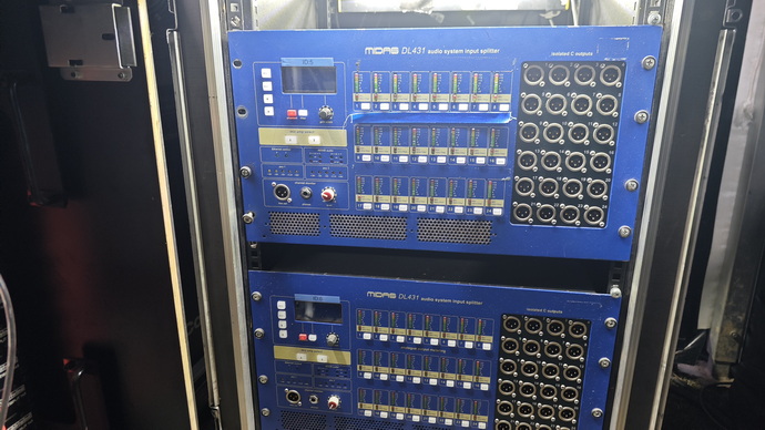 现场精心布置了两台DL231接口箱,现场信号通过DL231稳定而高效地输入到调音台,经过调音台的精细处理后,再通过DL231输出至LAKE处理器以及PLM+功放。这样实现了所有处理设备的集控与监测,确保了整个扩声系统运行的高效性、稳定性和可控性,为现场音效的完美呈现提供了强大的技术保障。