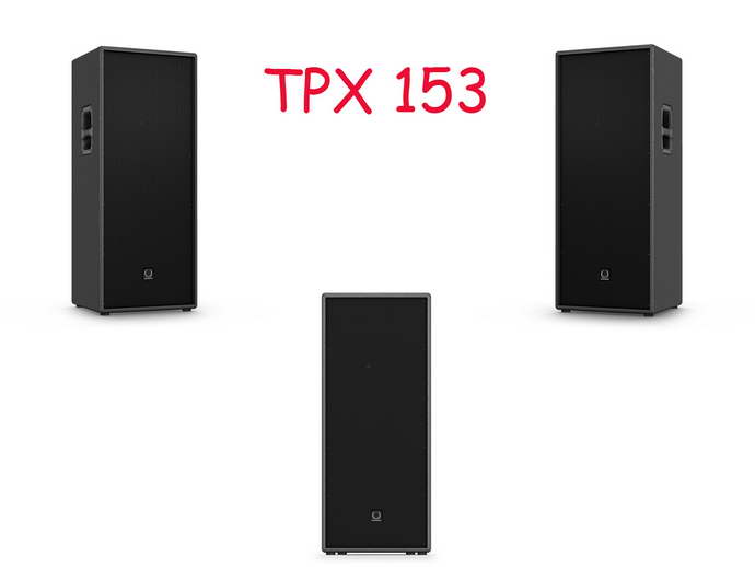 TPX 153是一款三路两分频音箱,被动分频峰值功率达到2000W。TPX 153适用于各种固定安装场所,其中包括厅堂扩声,鼓乐器补声等应用。作为一个独立的三路两分频系统不需要经过任何外部设备的均衡或者过滤,并且与Turbosound的超低音箱搭配组成Turbosound扬声器系统使用时性能最佳。由两个能够改善瞬态响应的15"高偏移低频驱动单元和一个有助于拓展高频频域的1"圆顶压缩驱动单元组成,提供水平70°×垂直50°的低失真角度覆盖。