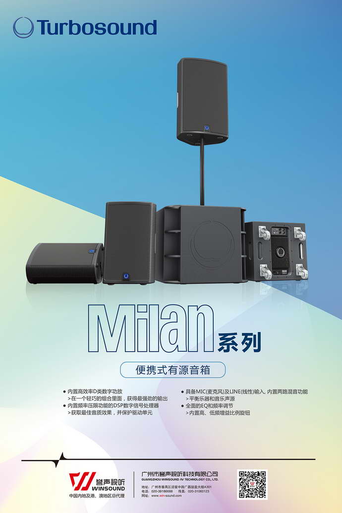 作为便携式数字有源音箱,英国知名品牌TURBOSOUND全新一代的Milan系列已经完成全方位的技术升级,通过增加大量复杂的DSP内部处理,为音乐家、DJ和AV集成应用提供便捷的使用方式和完美的声音重现。