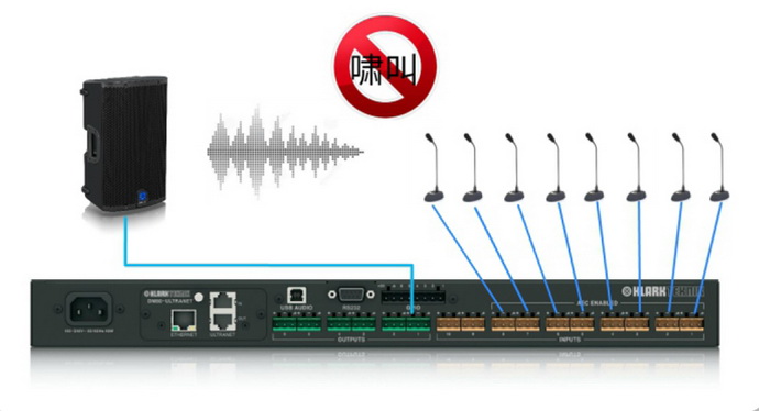 DM8000的自动混音模块在混音过程中自动地为您调整平衡输入的幅值,即便是在多路麦克风同时打开的情况下,系统依然保持一致的增益,内建的反馈抑制器更是实时检测各个频点预防啸叫的发生。这就像有一位杰出的调音师在实时控制,确保扩声性能优异。